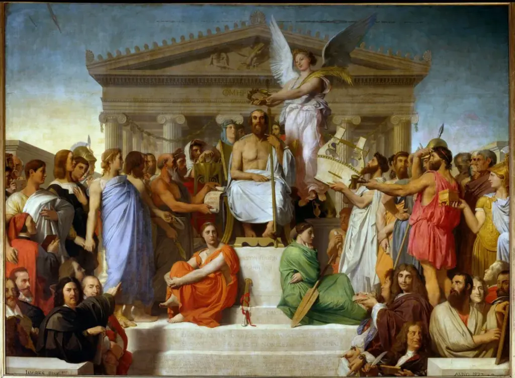 Jean-Auguste-Dominique Ingres (1780-1867), figure tutélaire de cette synthèse, incarne parfaitement cette dualité. Élève de David, il perpétue la tradition néoclassique tout en développant une sensibilité particulière pour l’Antiquité. Mais contrairement à son maître qui privilégiait les grands sujets héroïques, Ingres s’intéresse davantage aux détails du quotidien antique, aux textures, aux objets, aux gestes familiers qui humanisent l’Histoire.